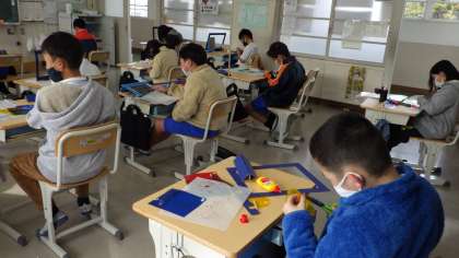 1月24日 その9 公開日 2023/01/24 更新日 2023/01/24 校長室から 4の2 図工です。 「光の差し込む絵」 どんな絵にしようか? 光が差し込んだらどんな風に見えるか楽しみだね。 校長 4年