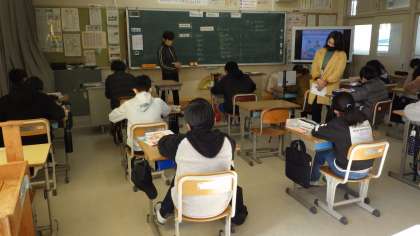 アリーン先生が、その英文についてのクイズを出す。答えはAかB