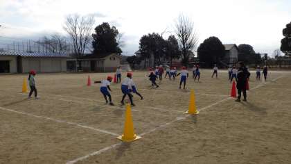 1月30日 その6 公開日 2023/01/30 更新日 2023/01/30 校長室から 2年生 合同体育 「たから渡し鬼ごっこ?」 ・赤、白、時間で区切って攻守交替します。 ・コートには、守りの子はいるレーンが3つあります。 ・守り子のがはいいて引けないレーンと交互になっています。 ・たからは、玉入れの玉。 ・攻撃側の子が、たからを持って、守りの子のいるレーンを突っ切って、タッチされなけば、たからをおいて、「トライ!」 そんなゲームだと私は思いました。 校長 2年