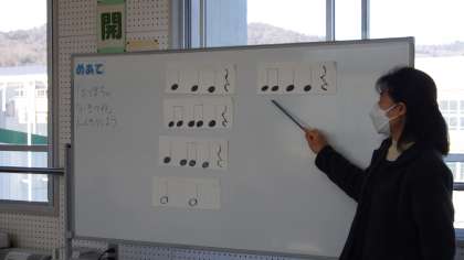 一人の子が選んだリズムを聴き、他のみんなは、同じリズムを打つよ。