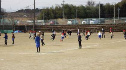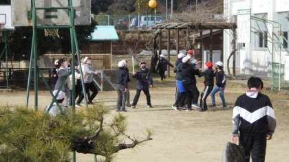 なかよしタイムの運動場です。 学力テストの後。 楽しく体を動かそう!