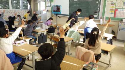 2月2日 その3 公開日 2023/02/02 更新日 2023/02/02 校長室から 1の1 算数です。 ボーリングのピンが倒れた数で引き算を立てて計算しよう。 ボーリングやりたい人? 「やりたい!!」 校長 1年