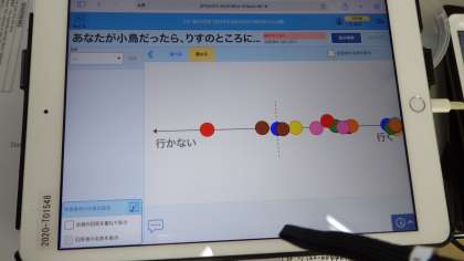 自分だったら… 一人一人タブレットで、自分の考え(「行く」「行かない」どの程度の気持ち)を示しました。