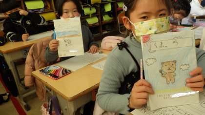 2月8日 その7 公開日 2023/02/08 更新日 2023/02/08 校長室から 1の1 国語です。 「おはなしをつくろう」 すてきな絵本ができましたね。 自分でお話を考えた、世界で一つの絵本だよ! 校長 1年