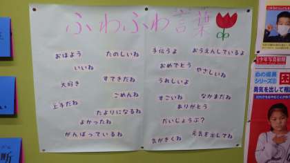 2月10日 その9 公開日 2023/02/10 更新日 2023/02/10 校長室から もう一つ保健室前の掲示です。 保健室の松井先生が、「ふわふわ言葉」を掲示してくれました。 相手が傷つくようなことを言わない、 思いやりのある加納っ子であってほしいです。 校長