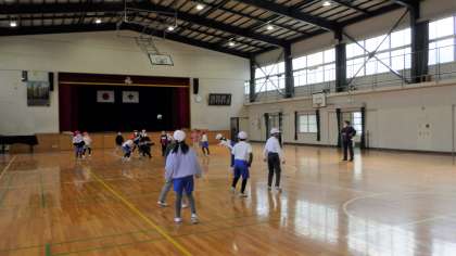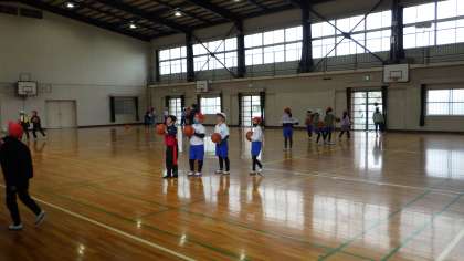 3の2 体育です。 前半はバスケットボールでシュート練習。 後半は、ドッジボールです。