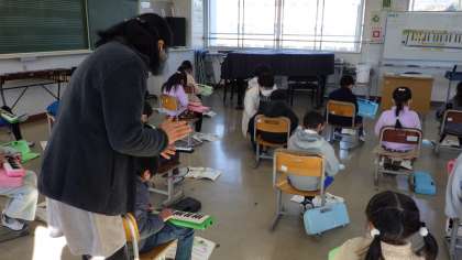 鍵盤ハーモニカで演奏しよう。