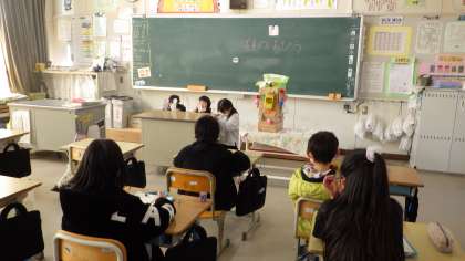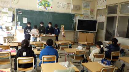 2月23日 その1 公開日 2023/02/22 更新日 2023/02/22 校長室から 3年生 桃づくりを伝える会 2年生の子たちに伝えたよ。 紙芝居やペープサート(紙人形劇)、実演など 伝わりやすいように工夫があったよ。 校長 2年 3年 特別支援学級