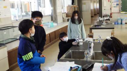 3月1日 その3 公開日 2023/03/01 更新日 2023/03/01 校長室から 4の1 理科です。 水を冷やしていくと温度や水の様子はどうなる? 時間と温度の数値をグラフに落とします。 ・0度で凍り始める。 ・0度で横ばいの時間がある。 ・しっかり凍ると、また温度は下がっていく(マイナスになる) ・試験管の高さがやや上がってきた。 ・凍りつくと、体積が増える? 校長 3年