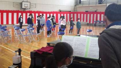 5年生 合唱練習です。 卒業式で贈る合唱です。 パートで分かれています。