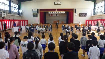 3月16日 その3 公開日 2023/03/16 更新日 2023/03/16 校長室から サプライズで、歌いました。 1・2年生が、6年生にはサプライズで、体育館にやってきました。 歌「明日へつなぐもの」を披露しました。 在校生の卒業式の参加が5年生のみなので、 今日、感謝の気持ちを届けました。 「ありがとうございます」の気持ちが歌声でしっかり伝わったよ。 校長 1年 2年 6年 特別支援学級