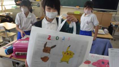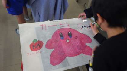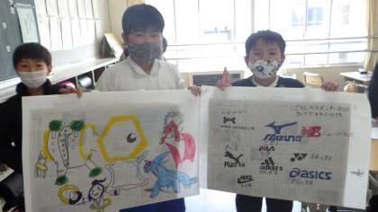 4の1 作品袋に絵を描きました。 思い思いの絵です。 いいね。