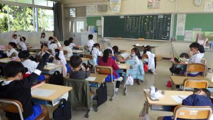 4月20日 その3 公開日 2023/04/20 更新日 2023/04/20 校長室から 2の1 国語です。 「風のぴゅうびんやさん」 犬さんはどんな気持ちでお手紙を読んだのかなあ。 子どもたちがら町で元気で暮らしているよっていうお手紙だね。 校長 2年