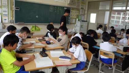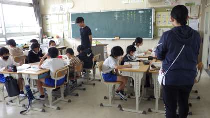 4月21日 その9 公開日 2023/04/21 更新日 2023/04/21 校長室から 5の1 国語です。 「「だいじょうぶ だいじょいうぶ」 班の中で、音読の評価をし合ったよ。 校長 5年 特別支援学級
