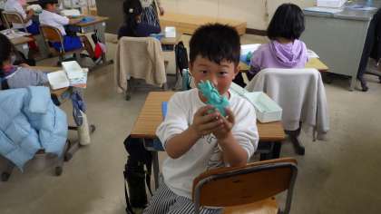 4月25日 その7 公開日 2023/04/25 更新日 2023/04/25 校長室から 2の1 図画工作です。 「にぎにぎ粘土」 いろんな握り方をしてできたかたちから作りたいものを作ろう」 集中して「にぎにぎ」したよ。 「見て!見て!」 校長 2年 特別支援学級