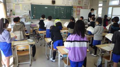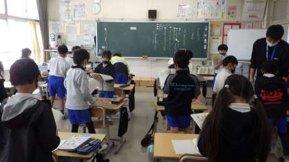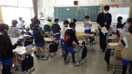 4月27日 その4 公開日 2023/04/27 更新日 2023/04/27 校長室から 3の1 国語です。 すいせんのラッパ。 第4場面 様子が伝わるように読もう。 「ぴいんと」「きょろきょろ」「目をこすりながら」… 工夫しようね。 校長 3年