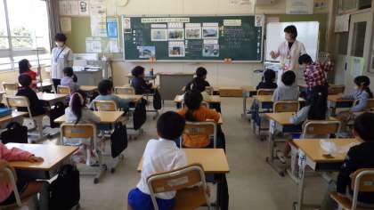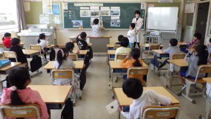 4月27日 その6 公開日 2023/04/27 更新日 2023/04/27 校長室から 1の2 食育です。 栄養教諭の堀田先生とチームティーチング(担任の先生と二人で)です。 給食はだれが作っているの? たくさんの人の力で作られているんだね。 安全においしく作ってくれてありがとう。 この授業は、1の1でもやったよ。 校長 1年