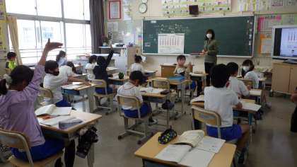 4月28日 その3 公開日 2023/04/28 更新日 2023/04/28 校長室から 4の1 理科です。 「一日の気温はどのように変化する?」 ・朝から上がって昼に一番高く、夜はまた下がっていく。 ・午後2時くらいが一番高いね。 校長 4年