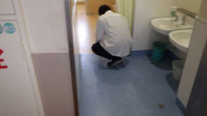 トイレのスリッパをそろえる宇野先生。 ありがとう。 使った人がそろえられると「はなまる」だね。