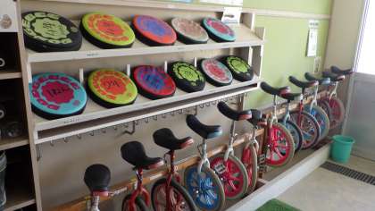やまももタイム直後の昇降口の遊び道具。