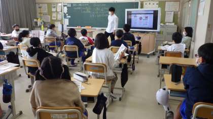 6の2 家庭科です。 調理が始まるのですね。 久々にグループで調理ができるようになりました。