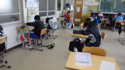 5の2 算数のテスト中です。