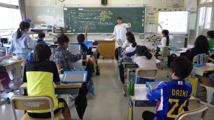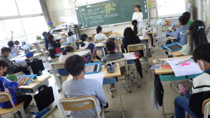 5月1日 その9 公開日 2023/05/01 更新日 2023/05/01 校長室から 4の2 社会です。 愛知県の東側には、大きな市 西側には 小さな市 一番大きな市は、豊田市 名古屋市・岡崎市・豊橋市も大きいね。 三河湾 知多半島と渥美半島 私は、愛知県は、カニさんに見えてます。 校長 4年