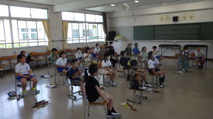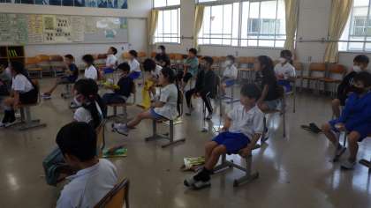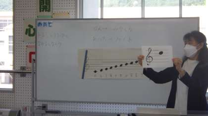5月10日 その6 公開日 2023/05/10 更新日 2023/05/10 校長室から 3の2 音楽です。 「ドレミ」と仲良くなろう。 音符の線の上は「みそしる」だよ。 線の間は「ファイト」だよ。 『はにほへといろは』も生かしています。 校長 3年