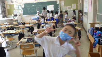 5月10日 その10 公開日 2023/05/10 更新日 2023/05/10 校長室から 1年生の給食の配膳中にお邪魔しました。 配膳中はとっても静かでだよ。 両クラスとも素晴らしいよ。 校長 1年 特別支援学級