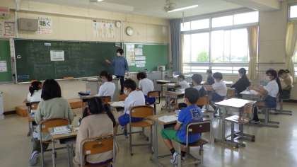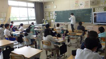 5月12日 その10 公開日 2023/05/12 更新日 2023/05/12 校長室から 6年生 算数です。 少人数指導だよ。 「分数÷整数の計算の仕方」 分子はそのまま。 分母×整数。 どうしてこうなるのか、考えています。 説明できたら、すごいよ! 校長 6年