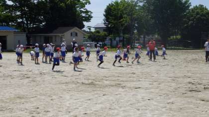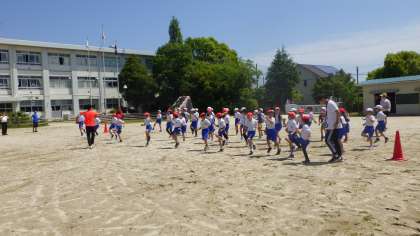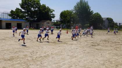 5月16日 その3 公開日 2023/05/16 更新日 2023/05/16 校長室から 3年生 走り方教室 もも上げ、つま先は、下げないよ。 上げるよ。地面をしっかりつかむよ。 じゃあ、もも上げして走るよ。 すごいよ。走り方が変わってきたよ。 校長 3年
