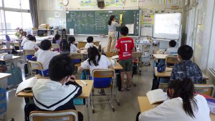 5月24日 その3 公開日 2023/05/24 更新日 2023/05/24 校長室から 4の2 算数です。 「あまりのある割り算の計算のしかた」 85÷4の筆算 「たてる かける ひく おろす」 割り算の筆算のキーワードだよ。 この筆算の最後、おろして1が立つよ。 あまりなんだね。 校長 4年