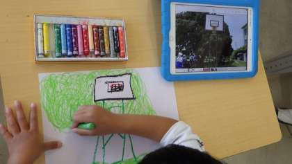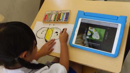 1の2 図工です。 絵を完成させるよ。 タブレットに写真を撮ってあるんだね。