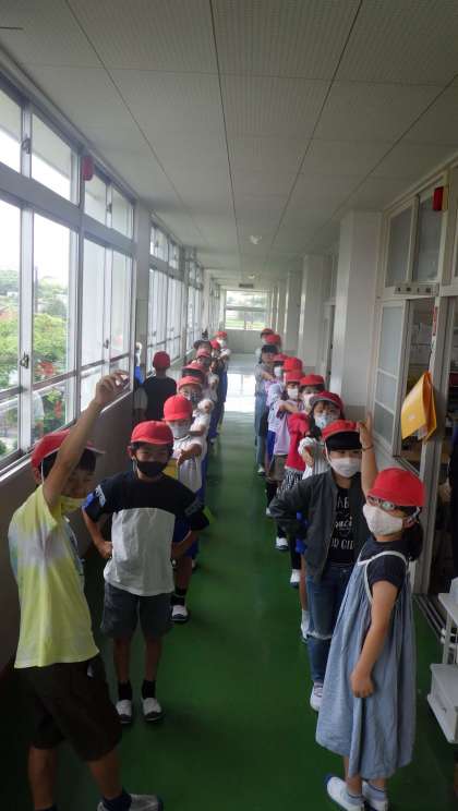 廊下に無言で並びます。