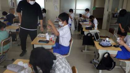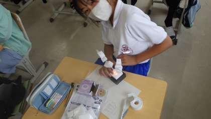 6の2 図工です。 「光の形」 LEDライトを照らすとどうなるかな。 集中して制作活動中です。