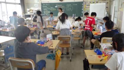 5月30日 その9 公開日 2023/05/31 更新日 2023/05/31 校長室から 4の2 理科です。 電池の働き。 3年生の時は、電池で豆電球がついたね。 今年は、プロペラを回してみよう。 モーターを使うよ。 校長 4年 特別支援学級