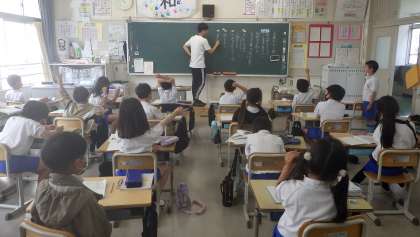 6月5日 その5 公開日 2023/06/05 更新日 2023/06/05 校長室から 3の1 国語です。 「自然のかくし絵」 この題名の意味が分かったよ。 保護色を使って、敵から身を隠すんだね。 校長 3年