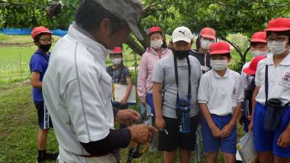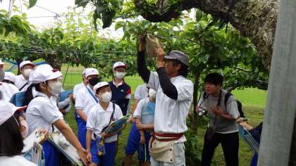 山田さんの梨園を見学したよ。