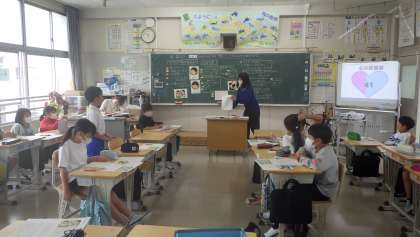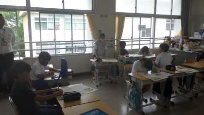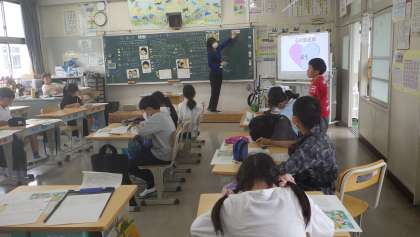 4の2 道徳です。 「僕の草取り体験」 話し合い隊形(コの字型の机)で、 熱心に話し合ったよ。