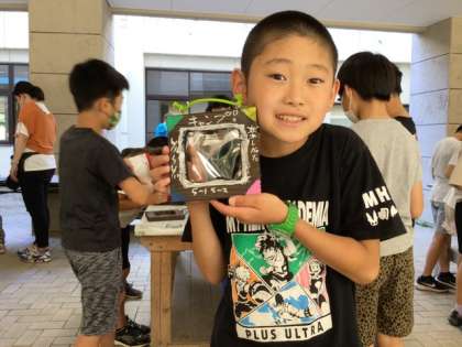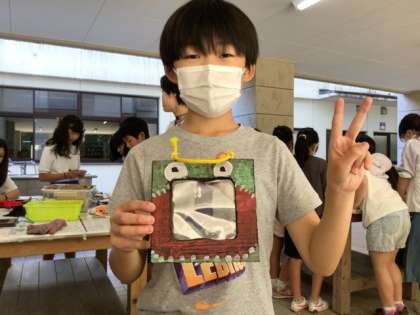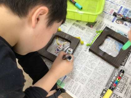 写真立て作り。 マーカで思い思いに絵や文字を入れたら出来上がり!