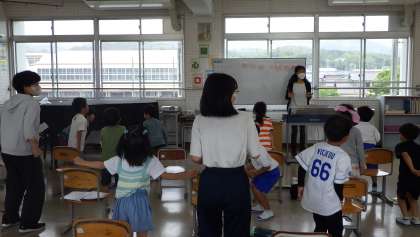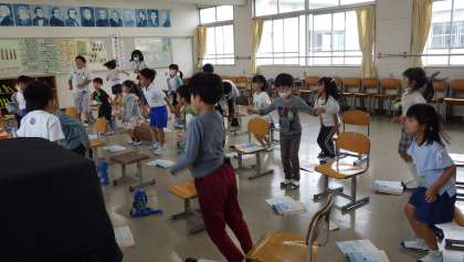 6月22日 その6 公開日 2023/06/22 更新日 2023/06/22 校長室から 1の2 音楽です。 「白くまのジェンカ」 曲に合わせて拍手をしたり、ジャンプをしたり…。 楽しいね。 中学生は職場体験中です。 校長 1年