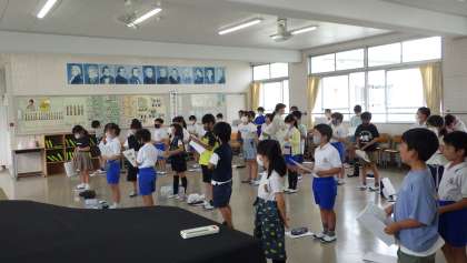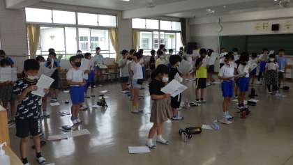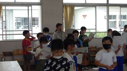 4年生 合同音楽です。 2部に分かれています。 歌声、よくなっています。