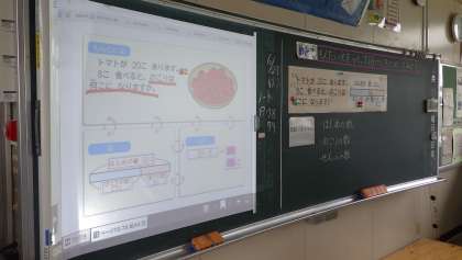 6月27日 その1 公開日 2023/06/27 更新日 2023/06/27 校長室から 2の1 算数です。 問題文を作って、図や式にかいてみよう。 トマトが20個あります。8個食べると残りは何個? 校長 2年