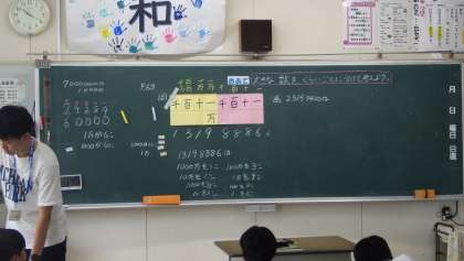 6月27日 その4 公開日 2023/06/27 更新日 2023/06/27 校長室から 3の1 算数です。 大きな数を位ごとに分けて考えよう。 12345678 1千万が1個 百万が2個 十万が3個 1万が4個 … 校長 3年