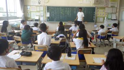 7月3日 その3 公開日 2023/07/03 更新日 2023/07/03 校長室から 5の1 国語です。 主語と述語を勉強しています。 「僕が花を植えた」主語:僕 述語:植えた 「その花が咲いた」主語:花 述語:咲いた ですね。 校長 5年 特別支援学級