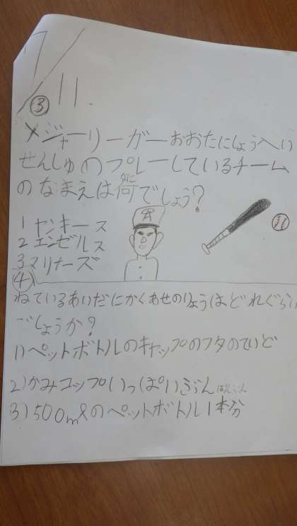 運動委員会が企画した「クイズビンゴ」に挑戦中!