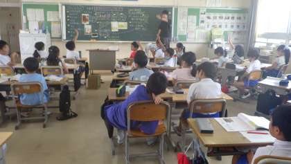 2の1 道徳です。 アンリ ファーブル 虫へのやさしさについて話しあったよ。