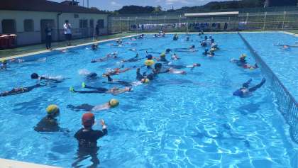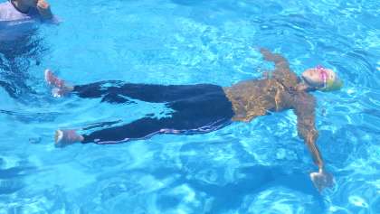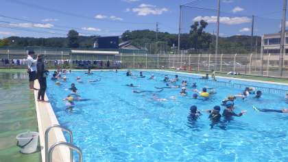5・6年 着衣泳 服を着たままプールへ。 浮いて待て!