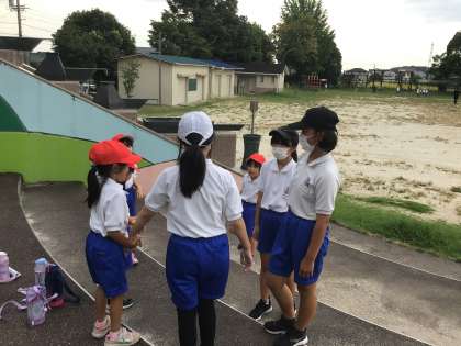 9月4日 その8 公開日 2023/09/04 更新日 2023/09/04 校長室から やっと運動場で遊べたよ! 金曜日も、今日のやまももタイムも、暑さ指数により、外遊びができませんた。 久しぶりの運動場! 校長