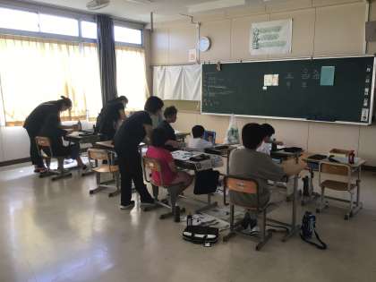 やまもも学級です。 書写です。 硬筆の子、毛筆の子、それぞれですが、がんばっています。